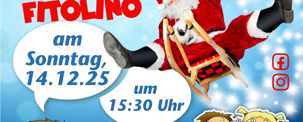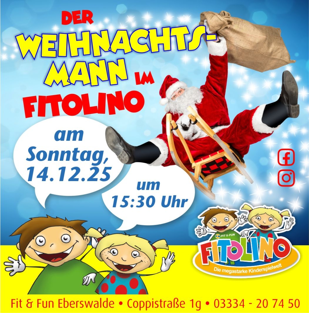 Am Sonntag den 14. Dezember kommt um 15:30 Uhr der Weihnachtmann mit einem großen Sack voller Geschenke ins Fitolino!